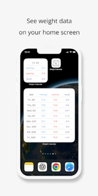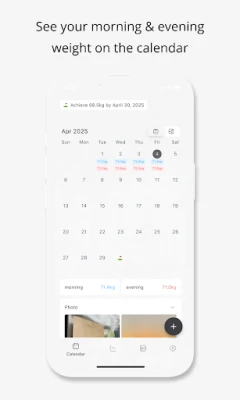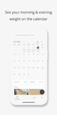 The Weight Calendar app makes it easy to record your weight in the morning and evening. You can check your recorded weight at a glance on the calendar.