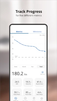 ★ See weight, body fat, muscle mass, water weight, and BMI in graph or list view ★ View and download your full weigh-in history ★ Free, automatic, and secure cloud backup of your results ★ Log in to view your data across your devices ★ Works with our without a network connection ★ Friendly support team standing by at [email protected]